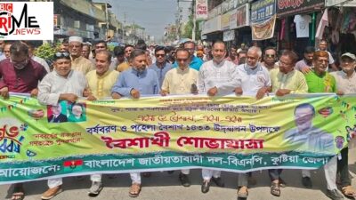 নতুন বছরকে স্বাগত জানাতে সকাল কুষ্টিয়া পৌরসভা বিজয় উল্লাস চত্বরে বিএনপি ও অঙ্গ সহযোগী সংগঠনের নেতাকর্মীরা খন্ড খন্ড শোভাযাত্রা নিয়ে মিলিত হোন। পরে সাড়ে ১০টার দিকে কুষ্টিয়া জেলা বিএনপির নেতৃত্বে বর্ষবরণে শোভাযাত্রা বের হয়। শোভাযাত্রাটি শহরের প্রধান সড়ক প্রদক্ষিণ করে একতারা মোড়ে গিয়ে শেষ হয়। বিস্তারিত...