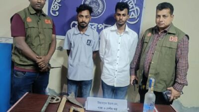 মেহেরপুর শহরের ফুলবাগান পাড়ায় অভিযান চালিয়ে দেশীয় অস্ত্র, ইয়াবা, গাঁজা ও বিদেশি মদসহ দুই যুবককে গ্রেপ্তার করেছে ডিবি পুলিশ। এ ঘটনায় আরও একজনকে পলাতক আসামি হিসেবে উল্লেখ করা হয়েছে।রবিবার রাত বিস্তারিত...
